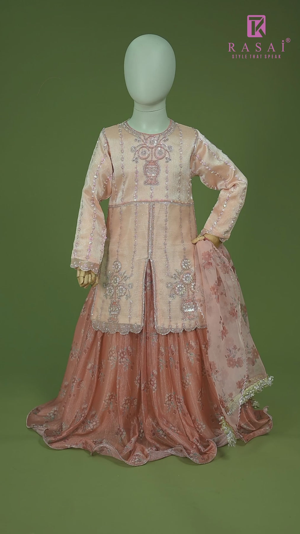 Cavern Pink color lava tissue shirt with cutdana and sequence embroided