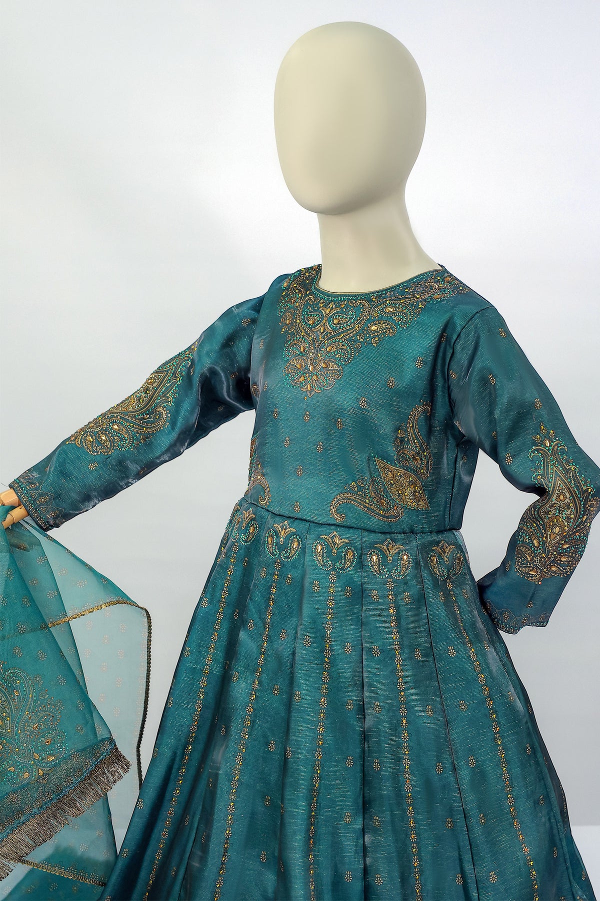 3 Piece Digital Printed Lava sea green Silk Maxi - RING38