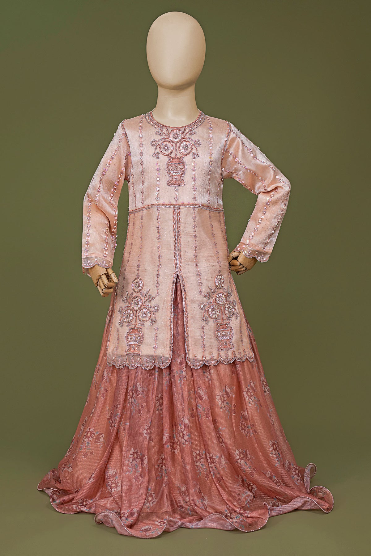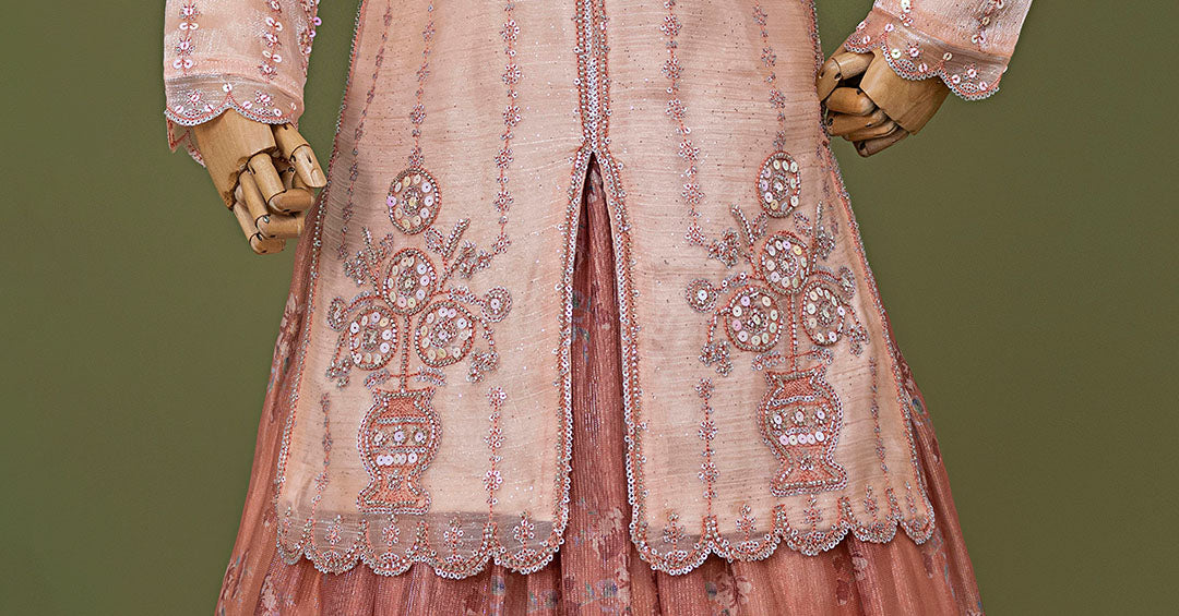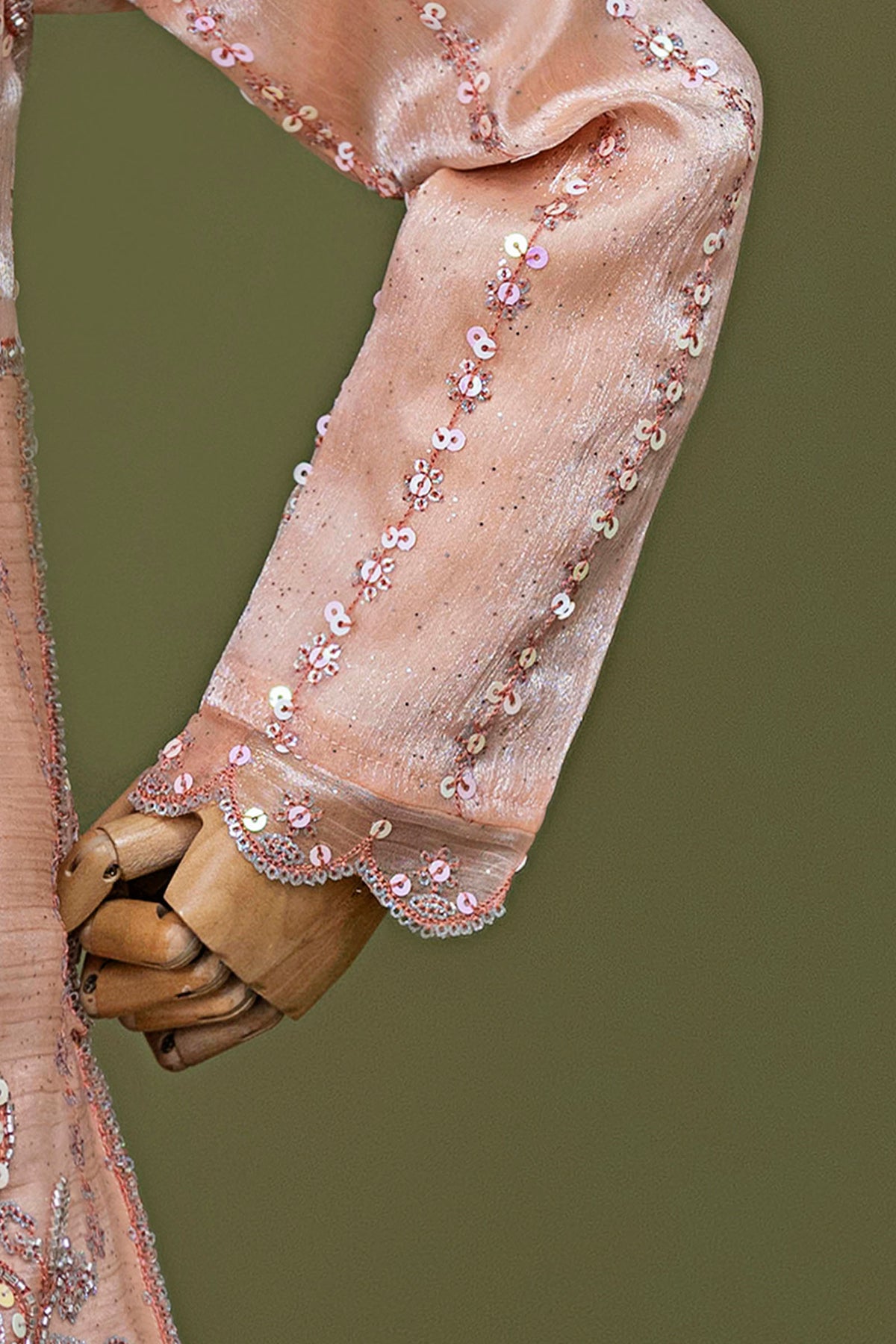 Cavern Pink color lava tissue shirt with cutdana and sequence embroided